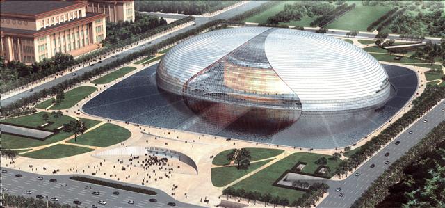 國(guó)家大劇院鳥(niǎo)瞰圖國(guó)家大劇院北立面效果圖 國(guó)...
